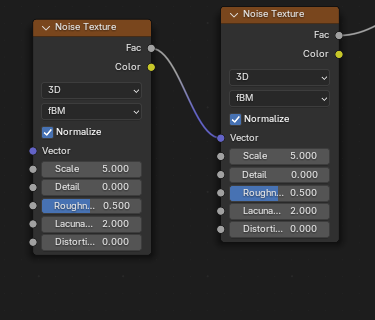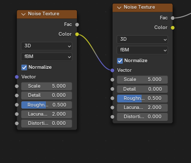 ![]() | ![]() | Noise Texture fBM Fac into Noise Texture fBM Vector. |