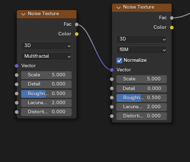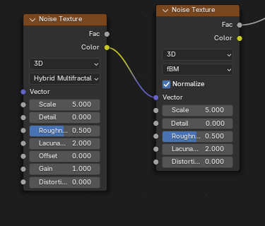 ![]() | ![]() | Noise Texture Multifractal Fac into Noise Texture fBM Vector. |