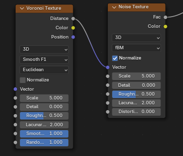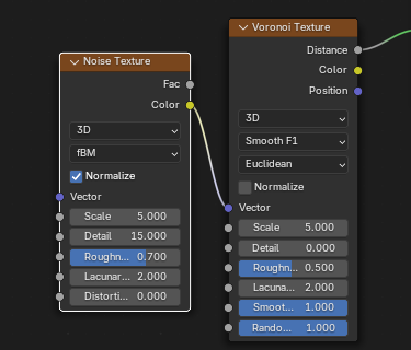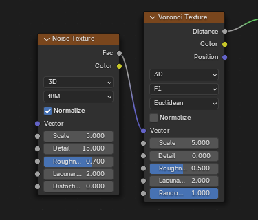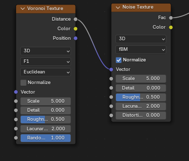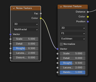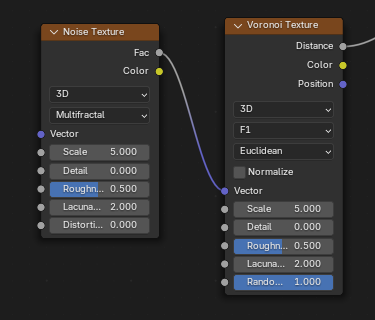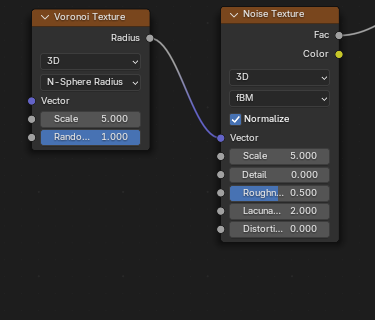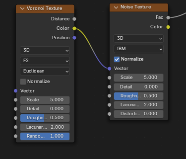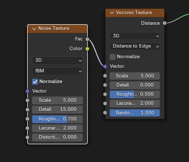 ![]() | ![]() | Noise Texture fBM Fac into Voronoi Distance to Edge Vector. |